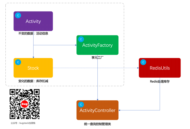 将重复出现的内容作为共享部分取出。比如现在我们有两个服务,但是他们都需要使用数据库工具类来操作,实际上这个工具类没必要创建多个,我们这时就可以使用享元模式,让数据库工具类作为享元类