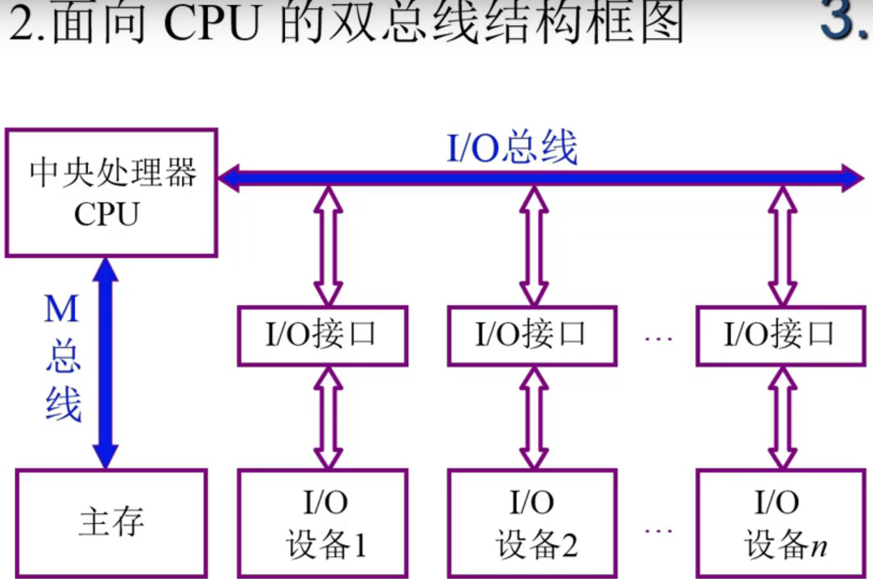 双总线结构也可以是主存总线和I/O总线,两个总线进行分离